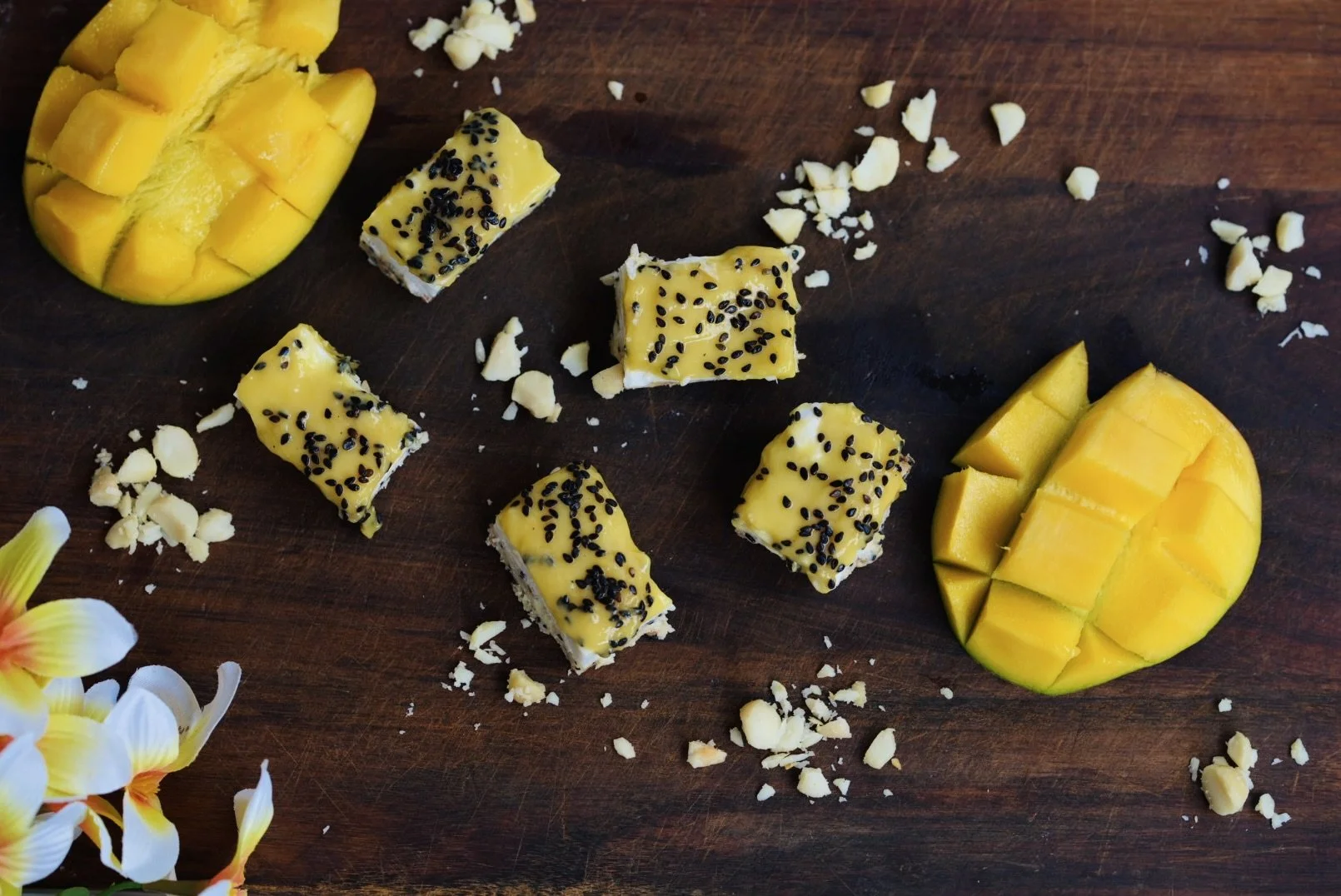 Mango Haupia Bars w/ Black Sesame Shortbread